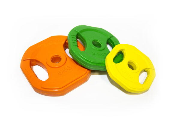 Incluye barra de 1,4 mts recubierta en goma, 2 topes y discos recubiertos en goma de 1,25 / 2,5 / 5 kg, 2 de cada uno.
